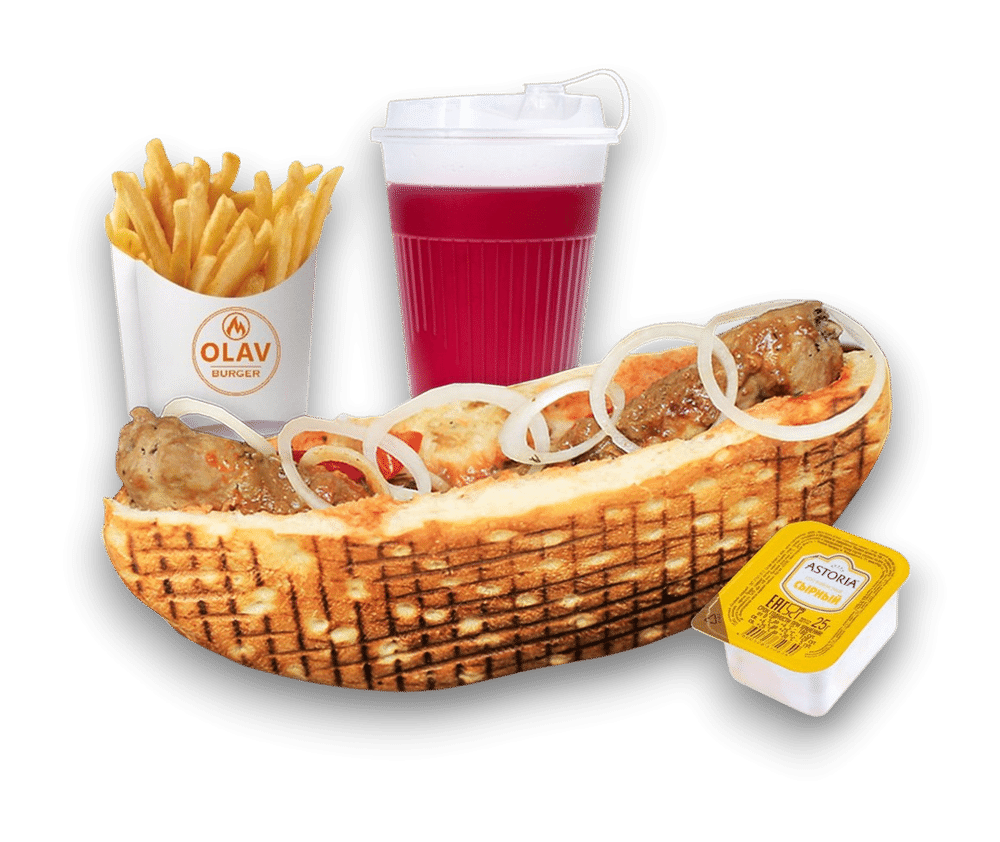 Тандирный хлеб Майонез Соус барбекю Помидор Огурец Шашлык-кофта Лук 🍟 Фри 🥤 Кола разливная — 400 мл 🧀 Сырный соус